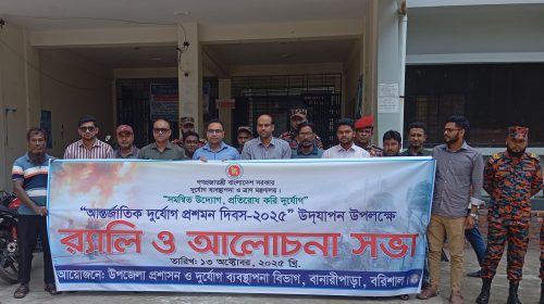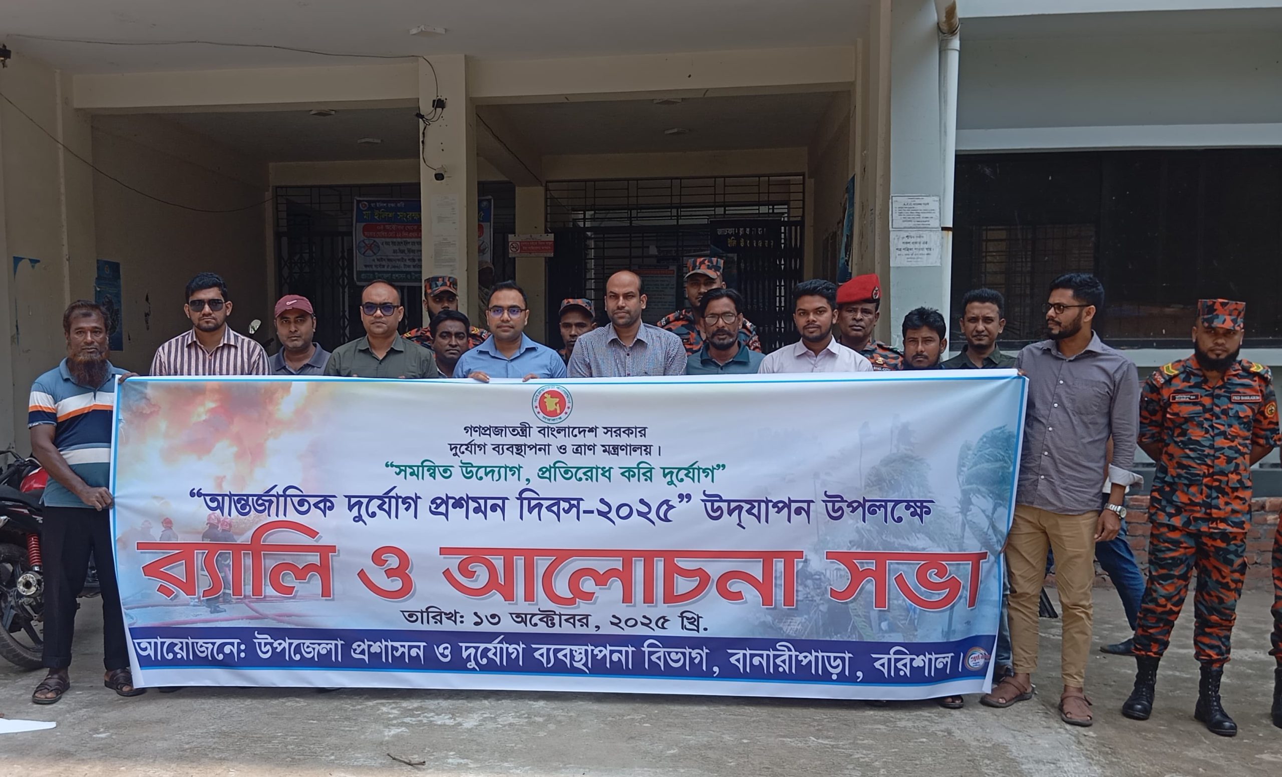 বরিশালের বানারীপাড়ায় আন্তর্জাতিক দূর্যোগ প্রশমন দিবস -২০২৫ পালন করা হয়েছে।