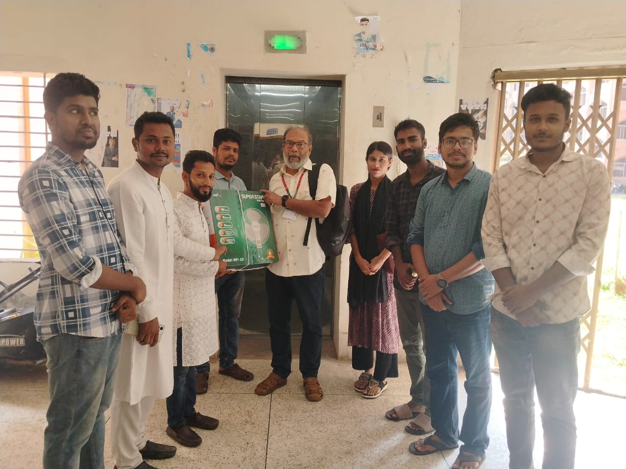 রবিবার সকাল ১০টা ৩০ মিনিটে বিশ্ববিদ্যালয়ের ভিসি অধ্যাপক মো. তৌফিক আলমের হাতে ফ্যানটি তুলে দেন ছাত্রদল নেতৃবৃন্দ।